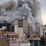 A plume of smoke rises after a strike in Tehran, Iran, Monday, March 2, 2026.Mohsen…