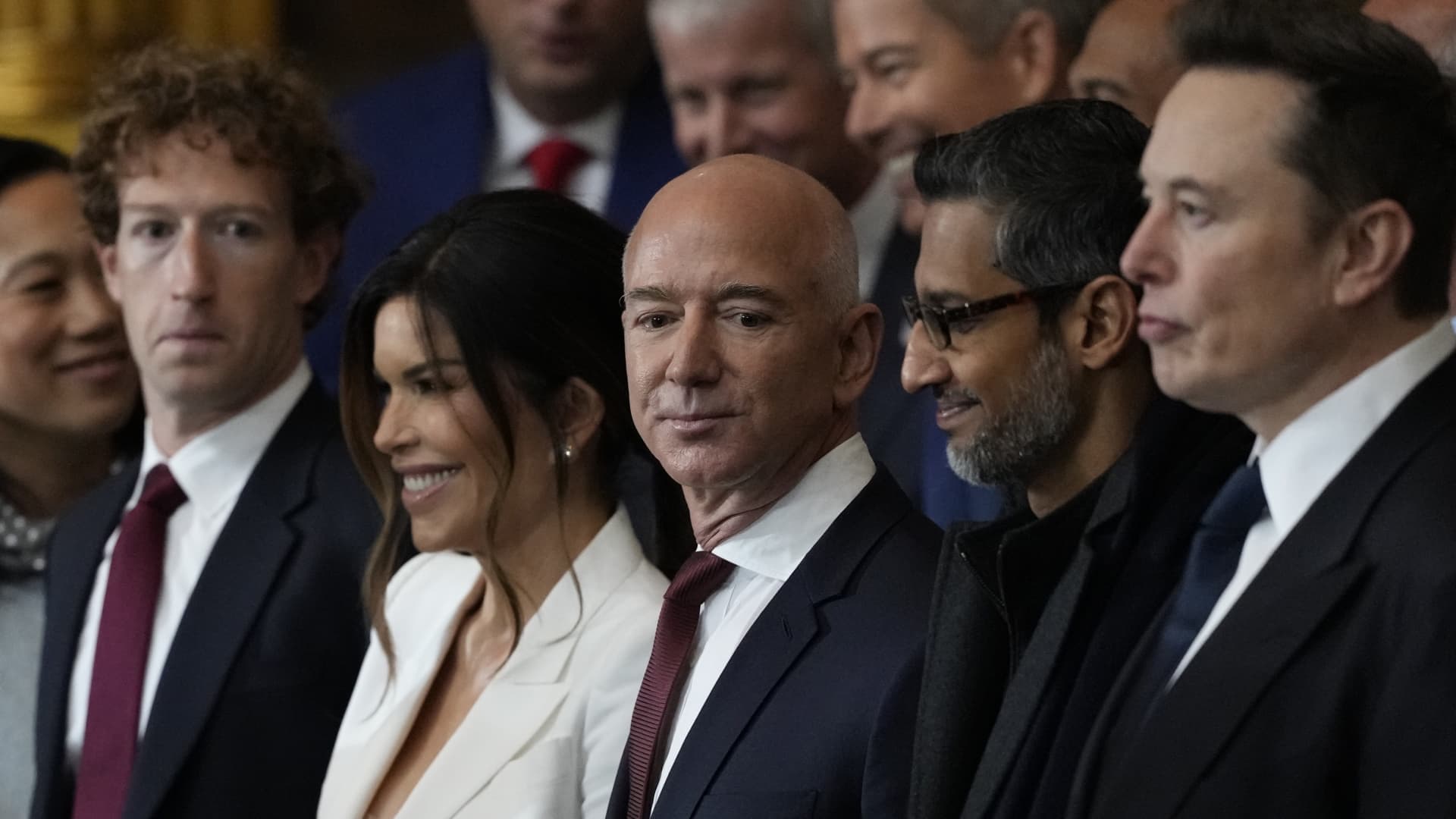 Guests including Mark Zuckerberg, Lauren Sanchez, Jeff Bezos, Sundar Pichai and Elon Musk attend the…