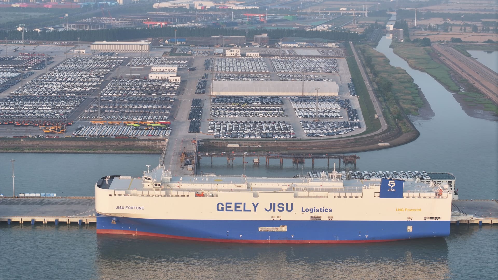 The JISU FORTUNE ship carries over 5,000 vehicles at Taicang Port and makes its maiden voyage to European countries such as the Netherlands and Belgium in Suzhou City, Jiangsu Province, China, on May 22, 2025.