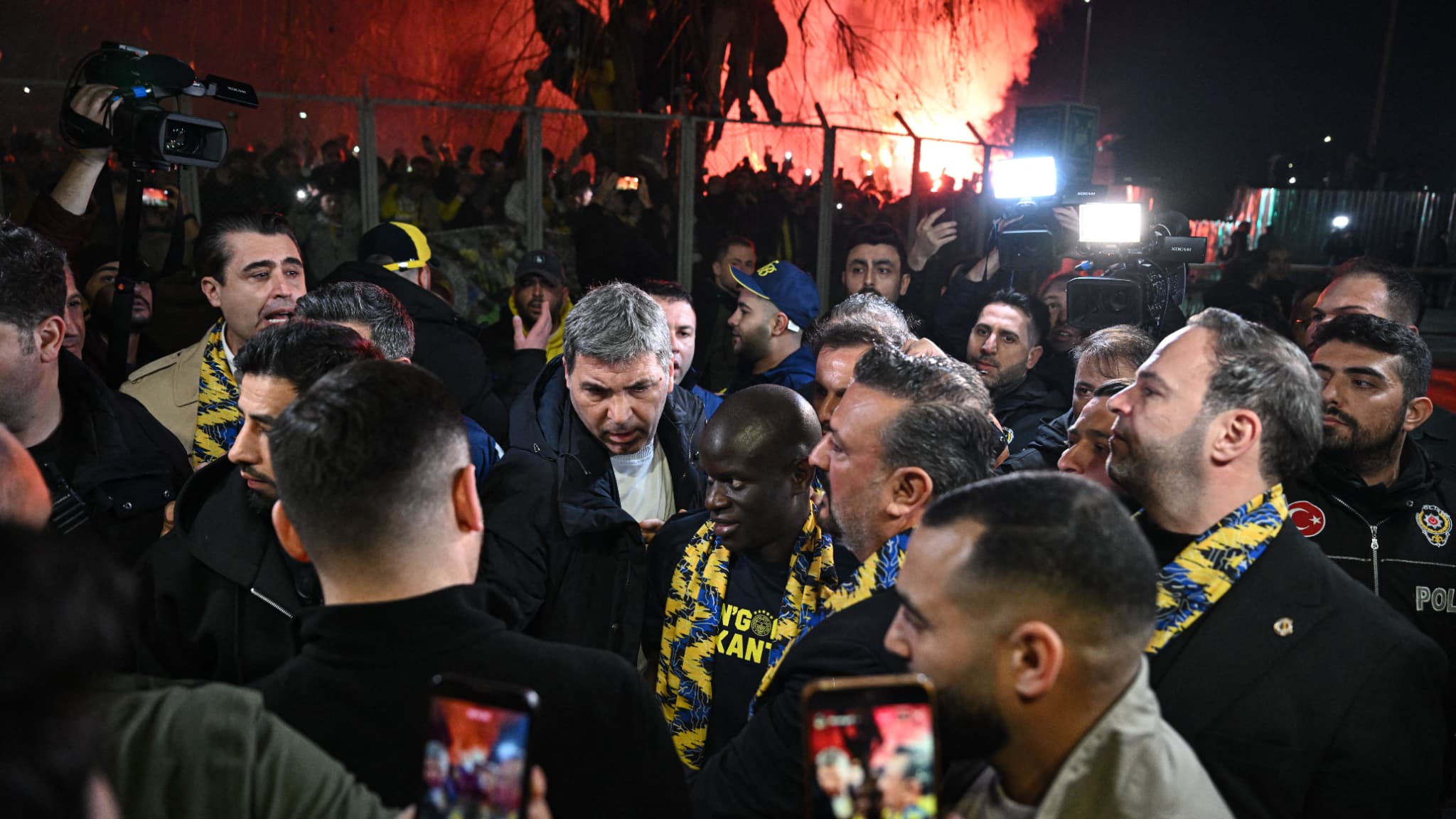 Transféré d’Al-Ittihad à Fenerbahçe mardi, N’Golo Kanté (34 ans) est arrivé à Istanbul mercredi soir où il a été accueilli par une foule de supporters qui ont scandé son nom et craqué des fumigènes.
