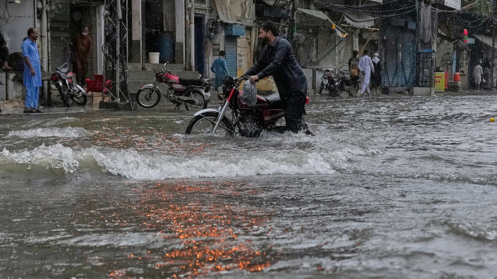 Heavy downpours continued Thursday, flooding streets in several urban areas including Rawalpindi and Lahore. Cloudburst in the Jhelum district in Punjab triggered flash flooding, prompting authorities to use boats to evacuate dozens of people.