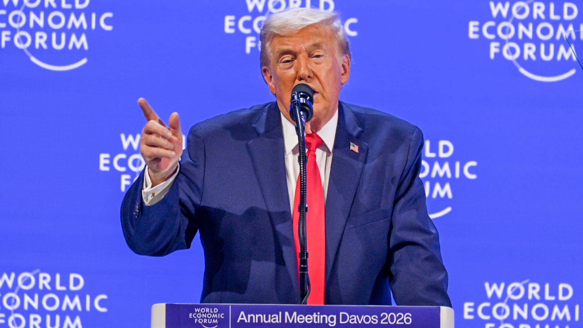 US President Donald Trump delivers a speech during the World Economic Forum Annual Meeting in…