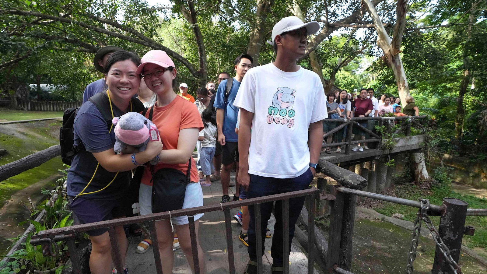 Another fan from neighboring Malaysia, Jennifer Tang, leaned over the enclosure to take pictures.