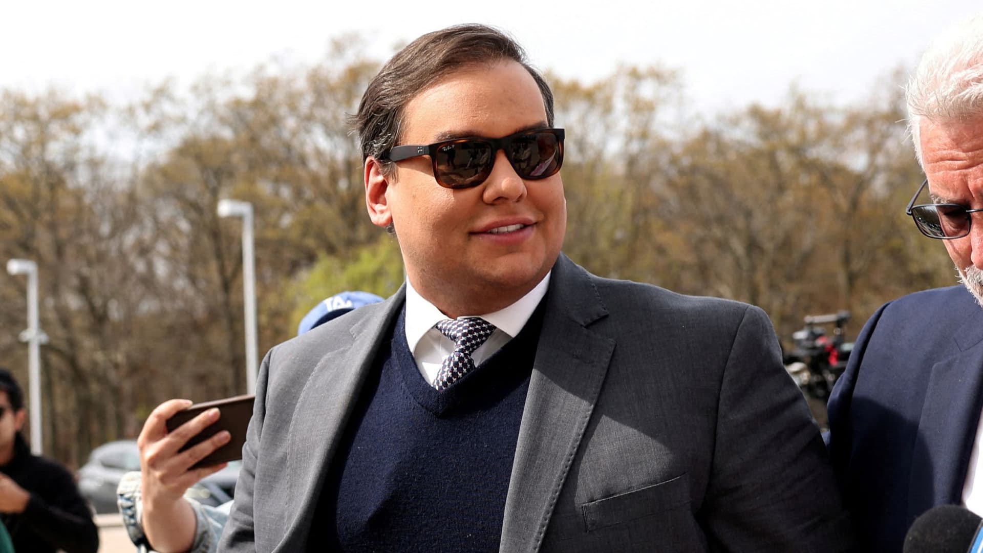 George Santos, who was expelled from the U.S. House of Representatives, arrives for the sentencing in his criminal corruption charges at Central Islip Federal Courthouse in Central Islip, New York, U.S., April 25, 2025.